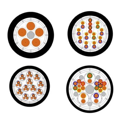 Daarnaast omvat de serie een variant met meerdere twisted triples, waarbij elk element individueel is afgeschermd en gejacket met PVDF. Deze kabel biedt een nog hoger niveau van EMI-bescherming en kan worden gebruikt in complexe installaties waar signalen extra afscherming vereisen. De individuele elementen zijn voorzien van kleurcodering om onderscheid te maken tussen verschillende functies, zoals pilootsignalen en richtingselementen.