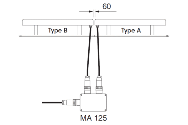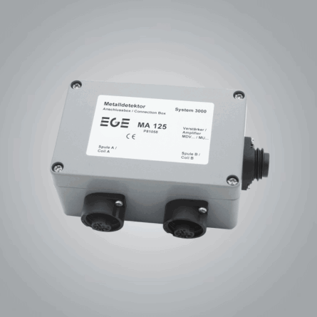 Met de MA 125 verbindingsbox kunnen twee detectorcoils op één versterker (MU of MDV-serie) worden aangesloten. De maximale kabellengte tussen een coil en de MA 125 is 3 meter.