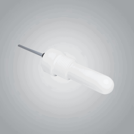 Wanneer de sensortip in vloeistof wordt ondergedompeld, verandert de capaciteit en wordt een schakelsignaal geactiveerd.